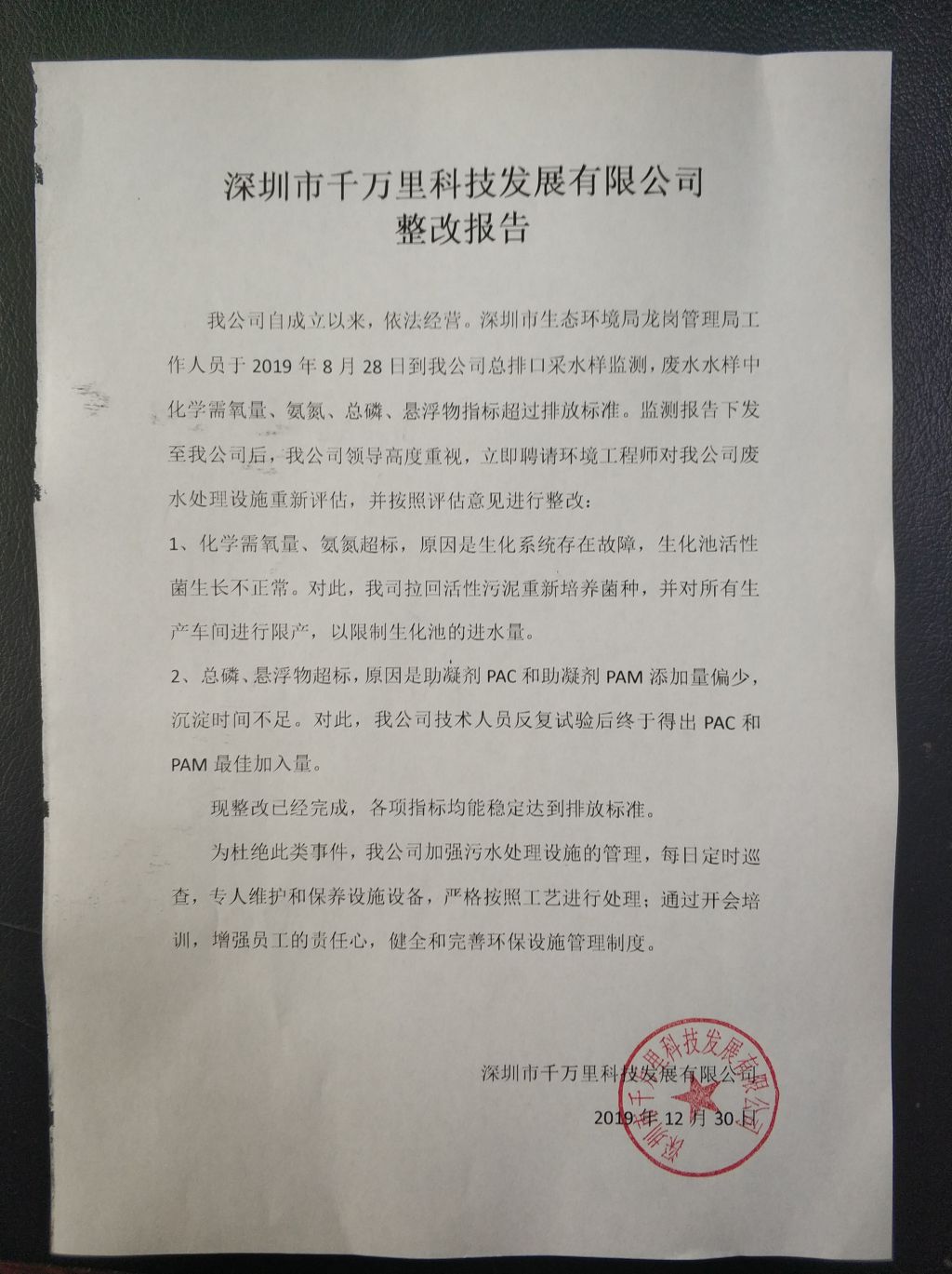 整改报告2019