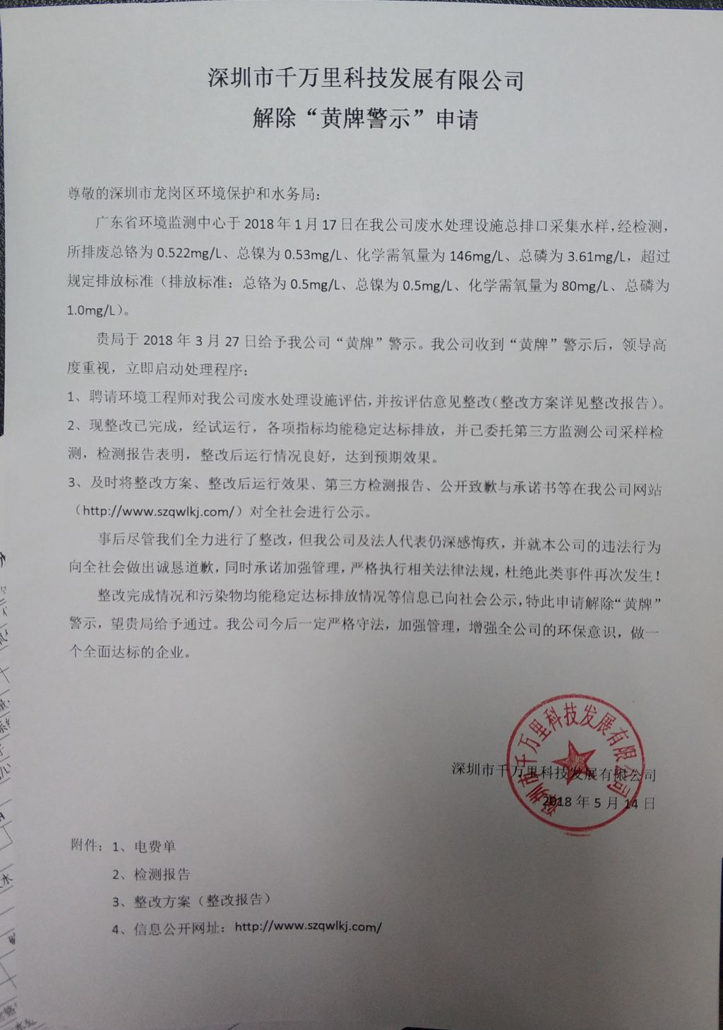 解除黄牌警示申请